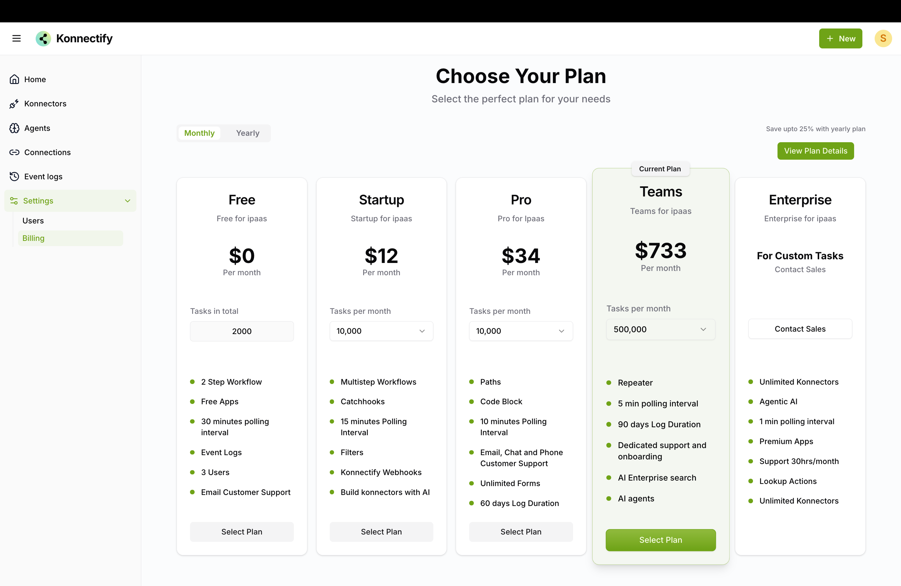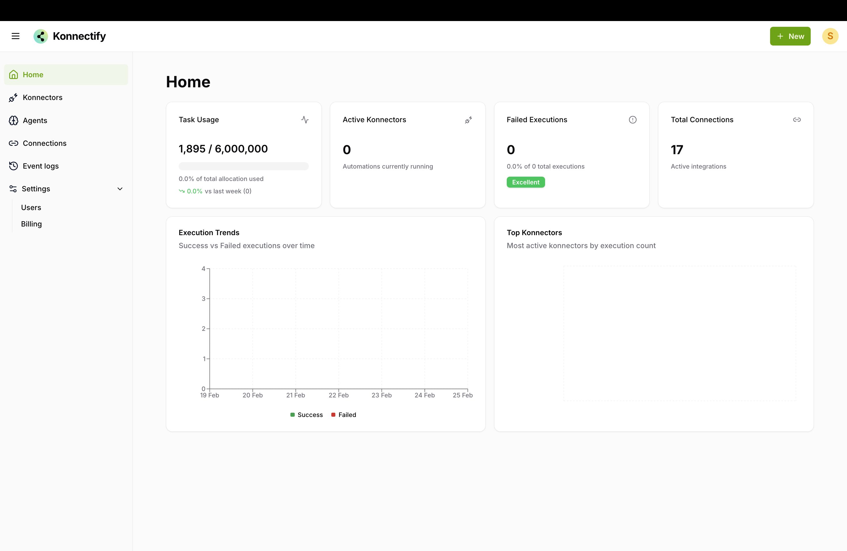 Step 1: Log in to your Konnectify account. You will land on the home page.