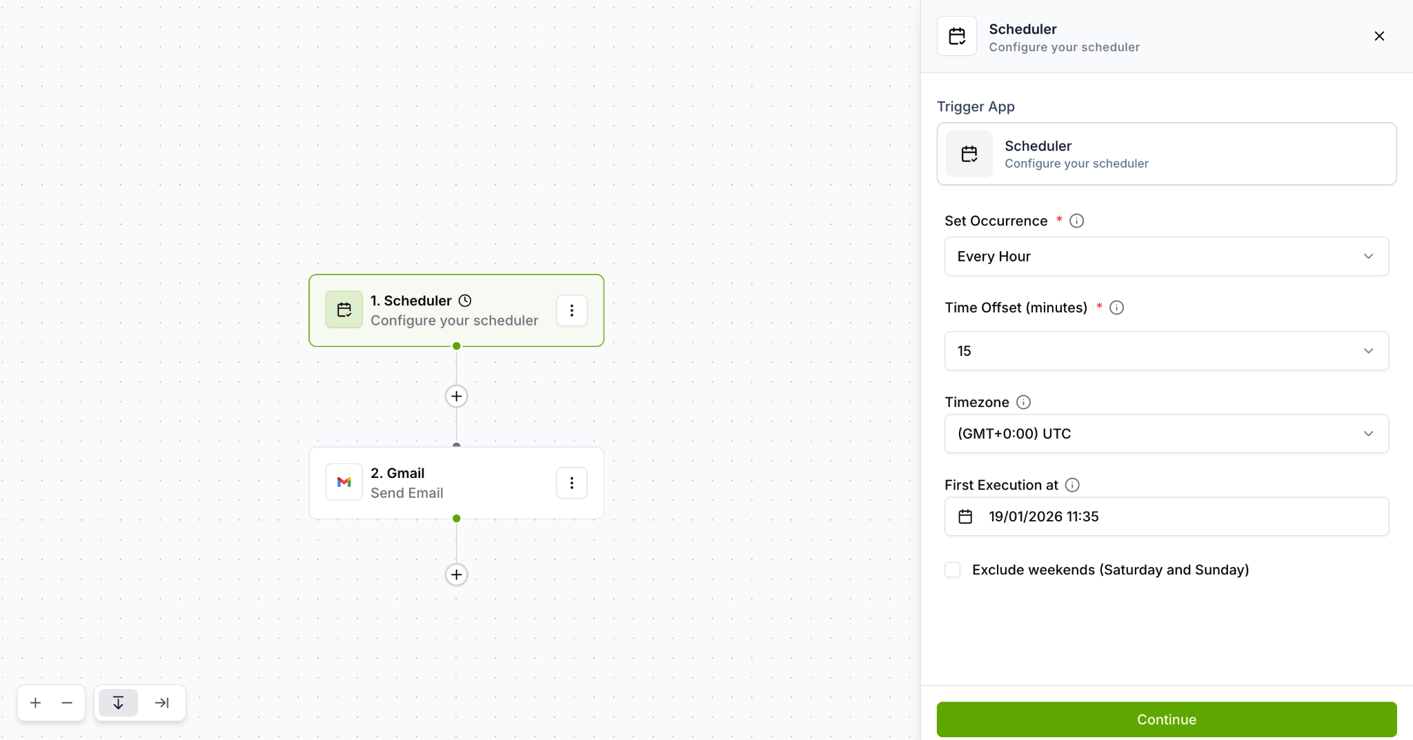 Click the Continue button in the Scheduler configuration panel